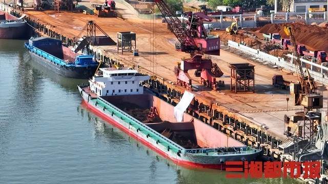 “兴隆8899”号超万吨级货轮卸货中-图源:三湘都市报
