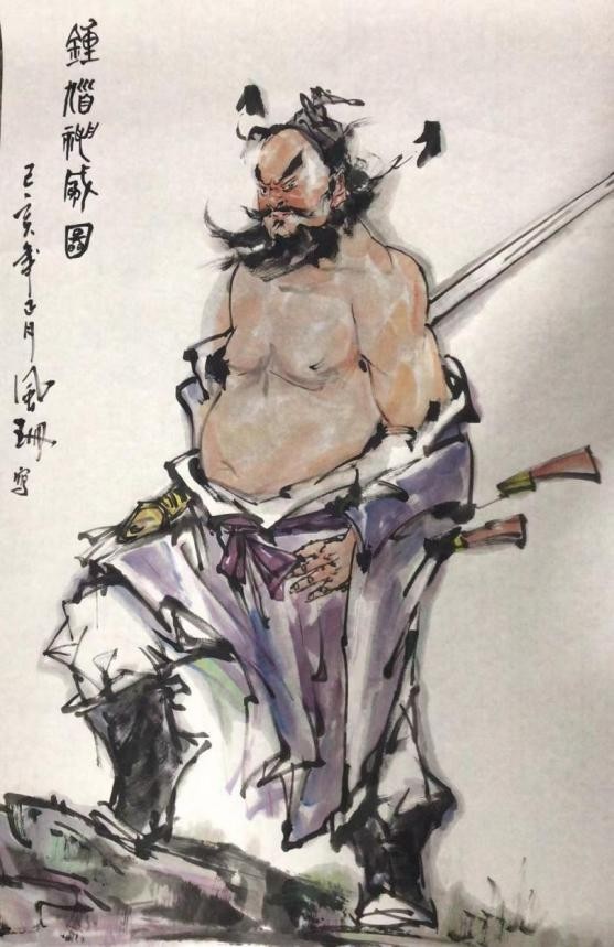 作品讲述:画家以扎实过硬、老练的几十年速写功底、浑厚的笔墨,描绘出了钟馗的神威。