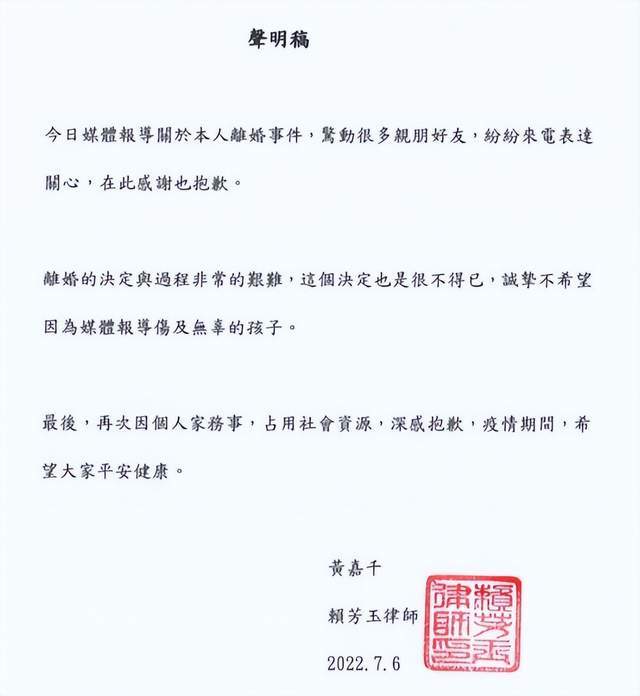 消息曝光的第一时间,媒体曝出是女方起诉离婚,随后黄嘉千发声回应,承认了正在办离婚,表示过程很艰难,离婚决定也很是不得已。