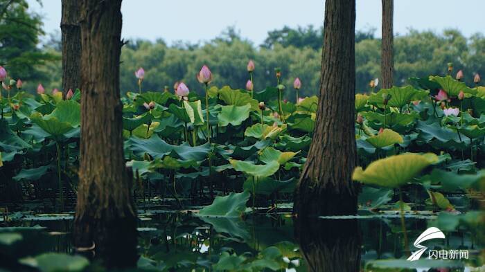 炎炎夏日,何处寻觅一抹清凉?走进烟台鱼鸟河公园,粉红的荷花亭亭玉立,幽香浮动、沁人心脾。层层叠叠的荷叶随微风飞舞,犹如碧浪荡漾,“风吹莲叶叠叠舞”的盛景在眼前铺开。一池池的荷花与周围的水杉完美融合在一起,湖光倒影,微波粼粼,奇幻而又美好,让人仿佛置身人间秘境。(来源:闪电新闻)