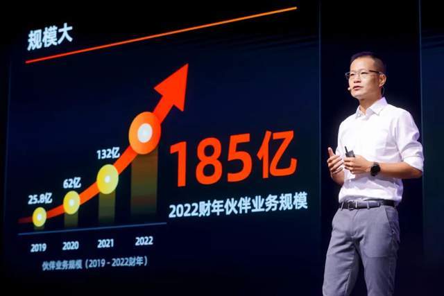 宝贵的机遇中暗含挑战,幸好漫漫长路已不必一人独行。2022财年,阿里云伙伴带来的业务规模已达185亿,四年间增长超7倍。蔡英华指出,伙伴业务仍有巨大增长潜力,营收占比要进一步提升,今年有望超过三成。