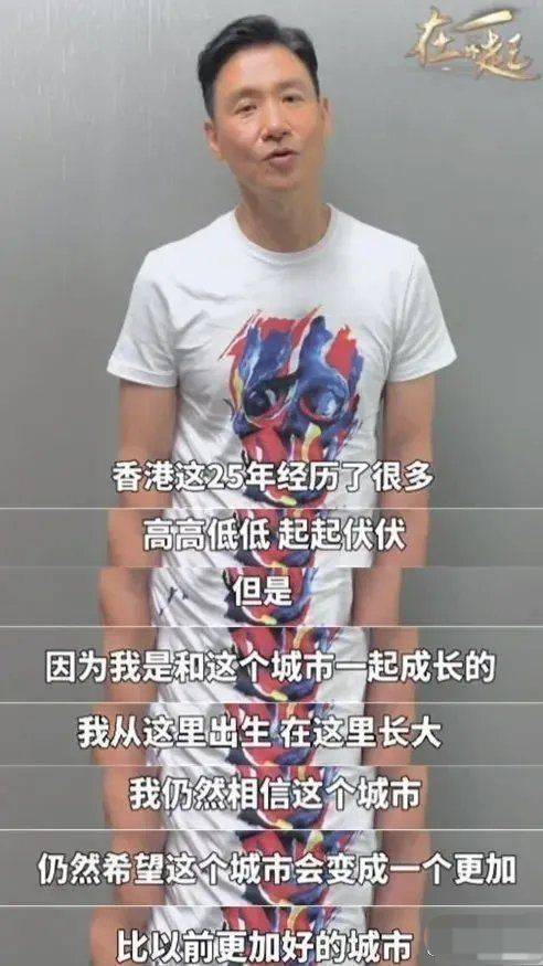 张学友在视频中表示,自己是伴随香港一起成长的一代人,香港在25年里经历了很多波折,但他仍然相信这个城市会变得越来越好,张学友称自己在香港出生,在香港长大,并且依旧愿意留在香港,为当地的发展助力,最后张学友还大喊口号,呼吁「香港加油」。