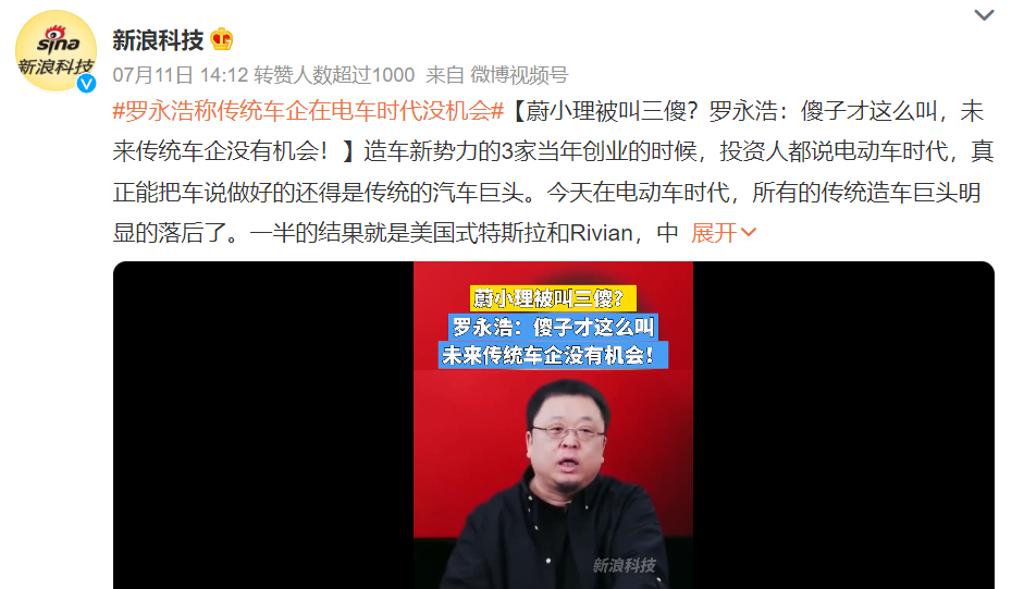 罗永浩罗老师又出名言了,近日在一次直播当中,老罗直言“在电动车时代,传统车企是没有什么机会的”。此话一出,又引起了网友们的广泛讨论,有支持的,也有嘲讽的。