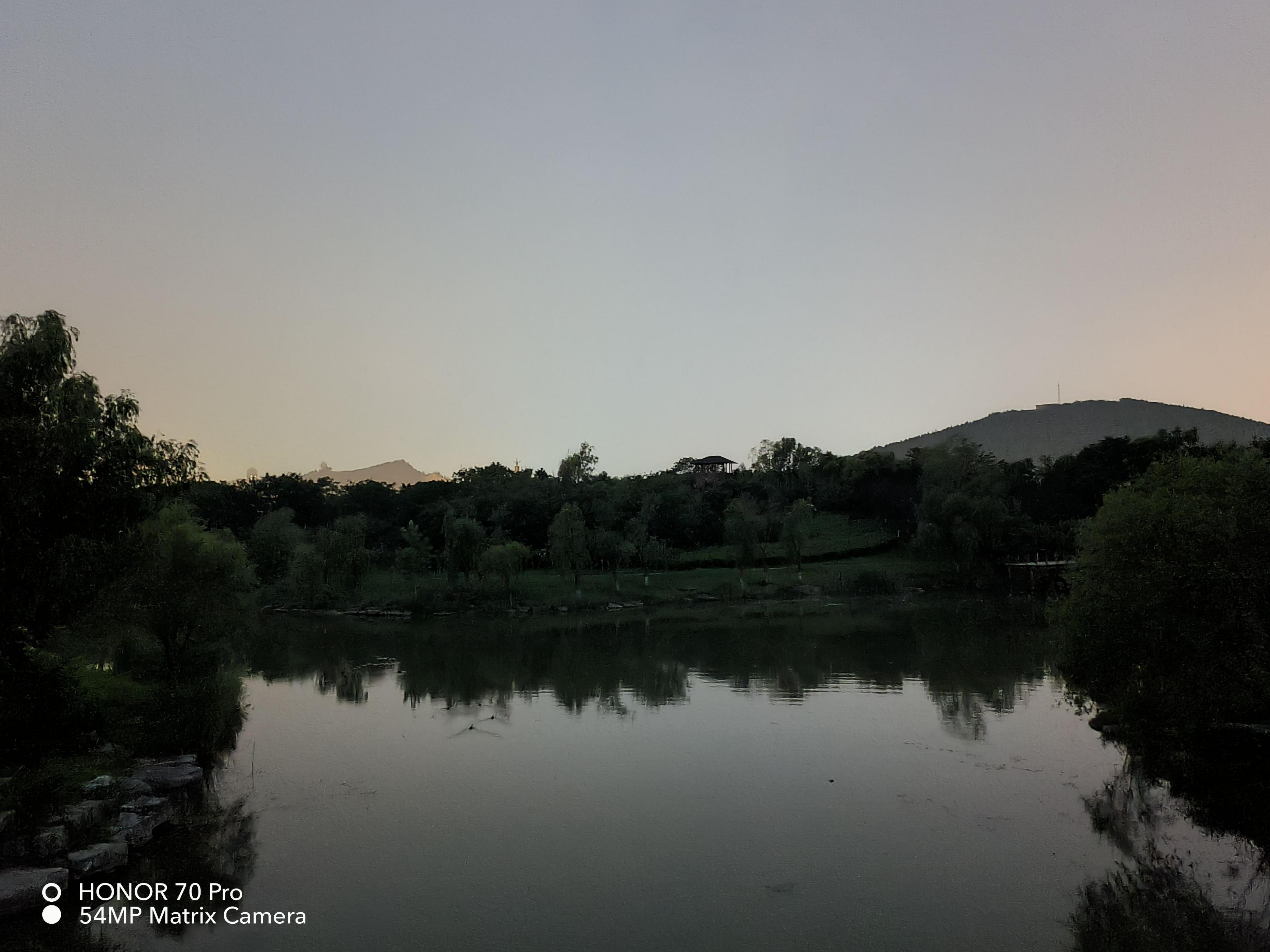 这张照片的拍摄时间是晚上8点左右,天色已经暗下来了,但是照片的整体亮度与细节,呈现得都还不错,包括画面边角的树叶也都比较清晰,没有涂抹感。