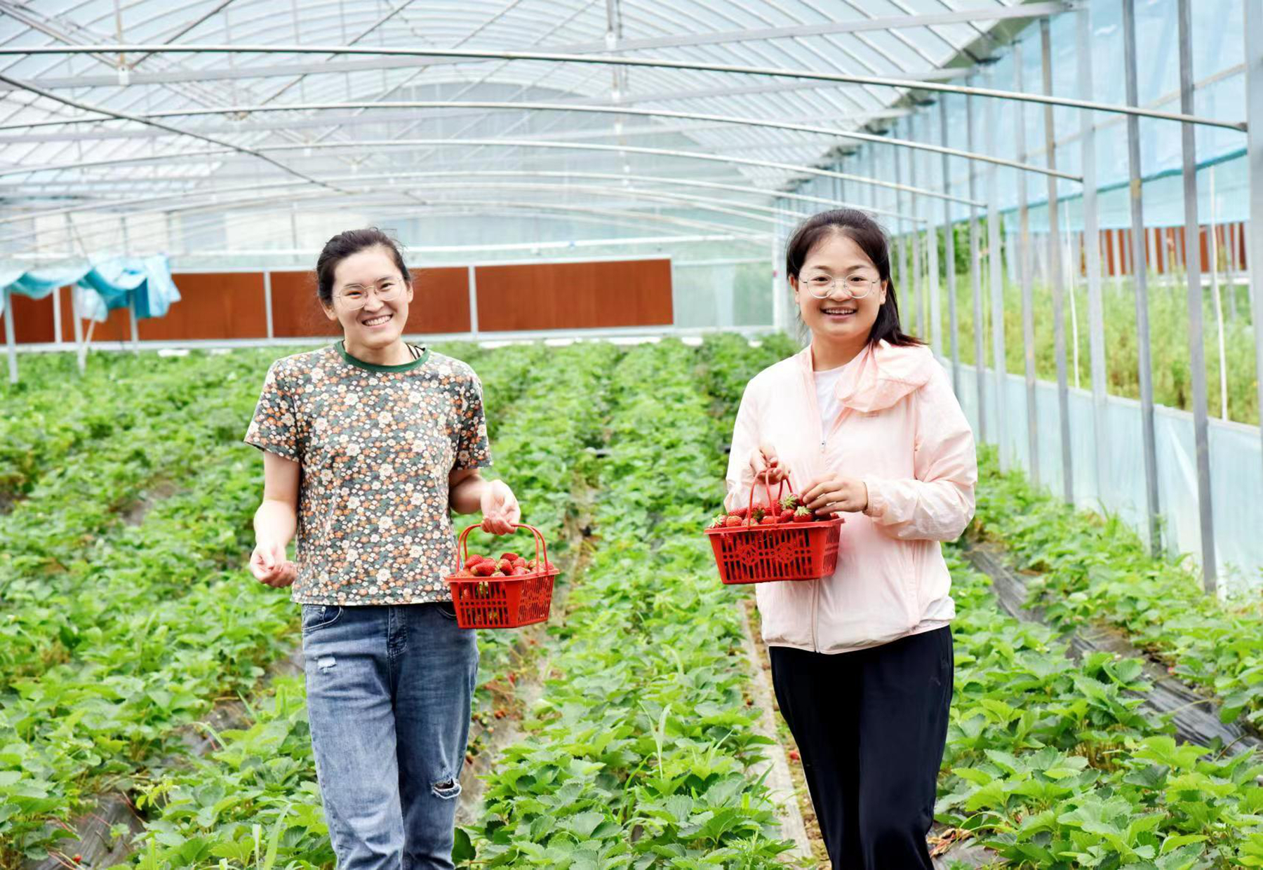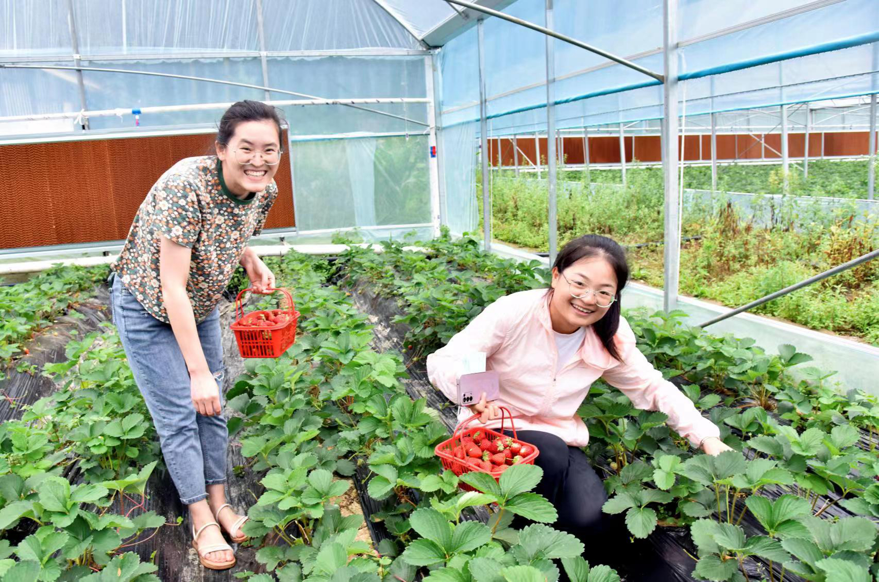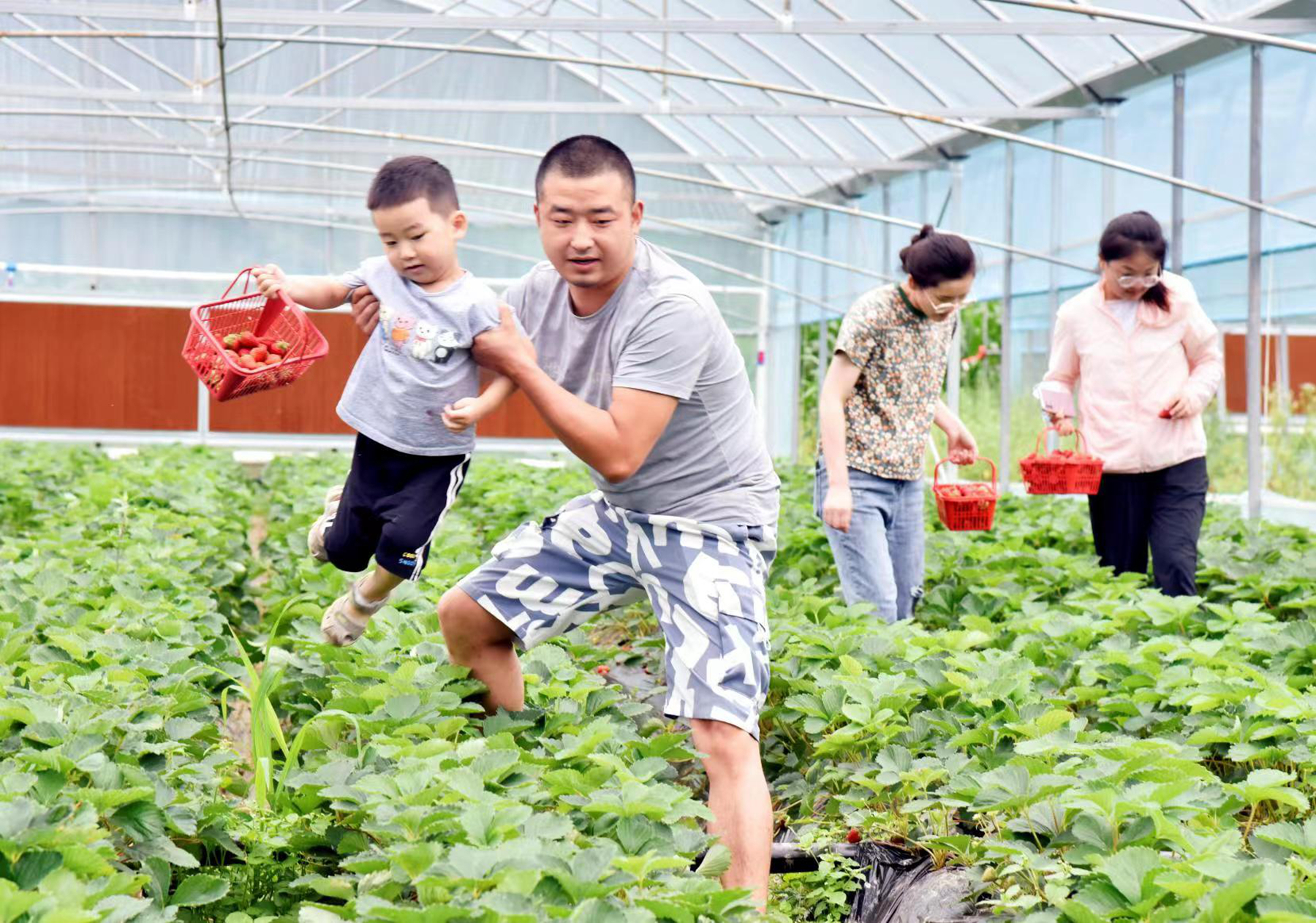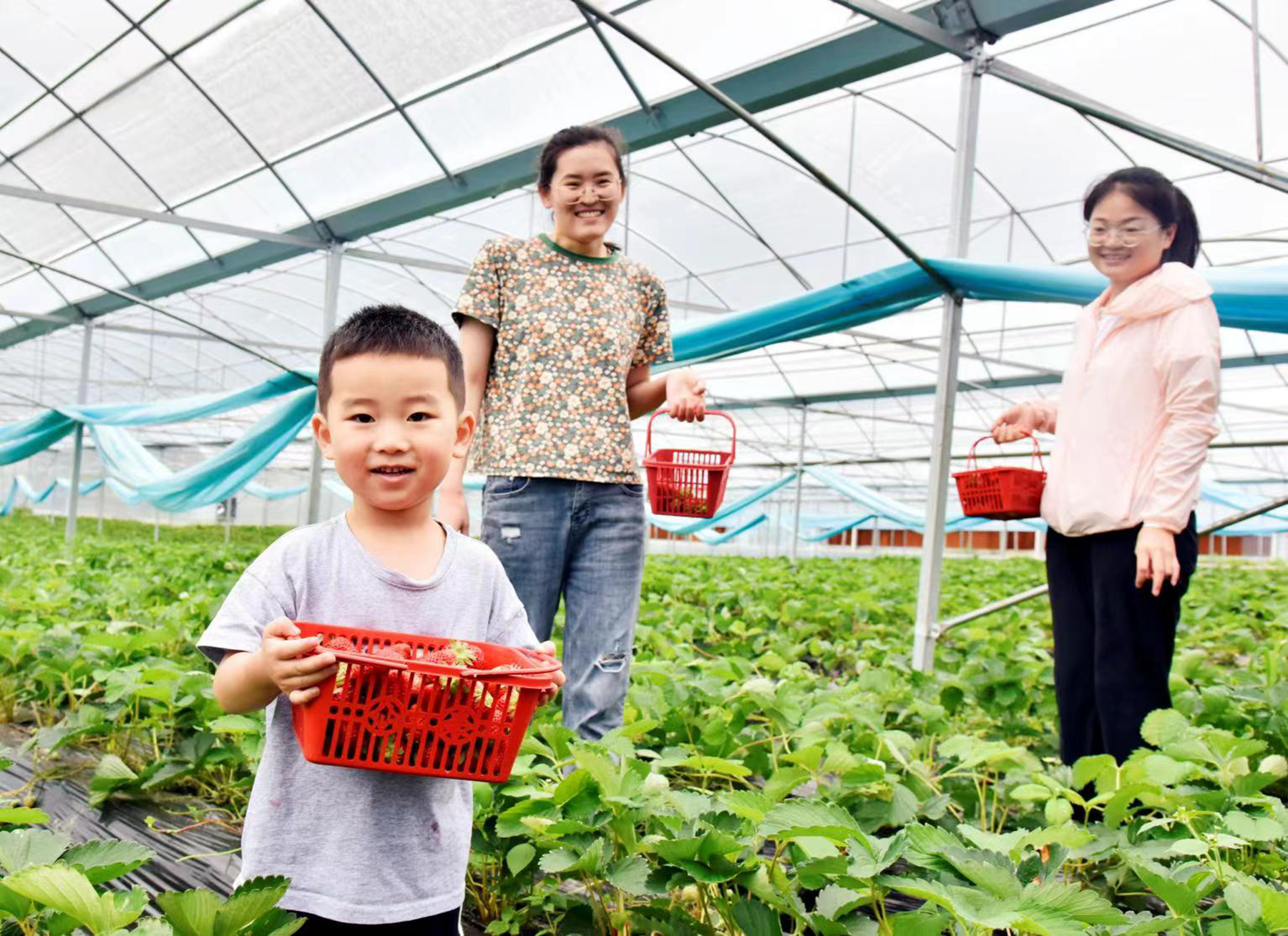 放眼望去,红彤彤的草莓似一盏盏小灯笼,掩映在绿叶之间,诱惑力爆棚。