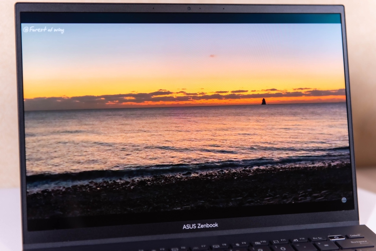 其实前面的测试也体现了我们常说的HDR,也就是高动态范围,明显要比LCD屏幕有本质上的提升。另外能提升视觉效果的就是灵耀X 13拥有10bit色深,直白点说就是它拥有更细腻的色彩过渡,不会出现色彩断层,尤其是看日出日落这种色彩过度非常细腻的照片或者视频,灵耀X 13的效果就像奶油一般润滑。当然拍出来的样片有没有断层,还得取决于你目前看的显示器色深,并且平台也会对图片做一些压缩,所以图片里的效果是远不如实际肉眼效果的。