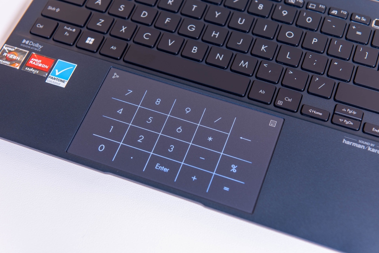C面最吸引人的便是超大面积触控板,使用起来完全不受束缚,手感也十分顺滑细腻,并且有隐藏功能,点按右上角的算盘按钮,触控板秒变一个小键盘,尤其对于计算类工作,实用性非常高。