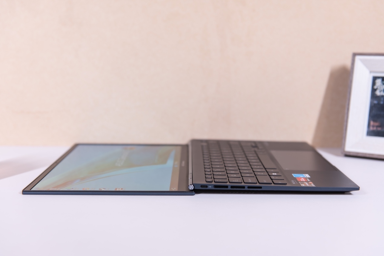 灵耀X 13全金属机身选用独特夜蓝配色,有别于传统黑色配色,不得不说这款夜蓝色更加年轻时尚。