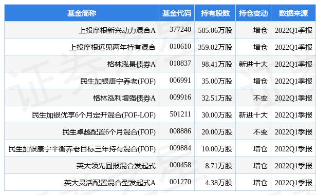 其中持有数量最多的基金为上投摩根新兴动力混合A,目前规模为75.3亿元,最新净值6.9405(7月13日),较上一交易日上涨0.89%,近一年下跌6.66%。该基金现任基金经理为杜猛。