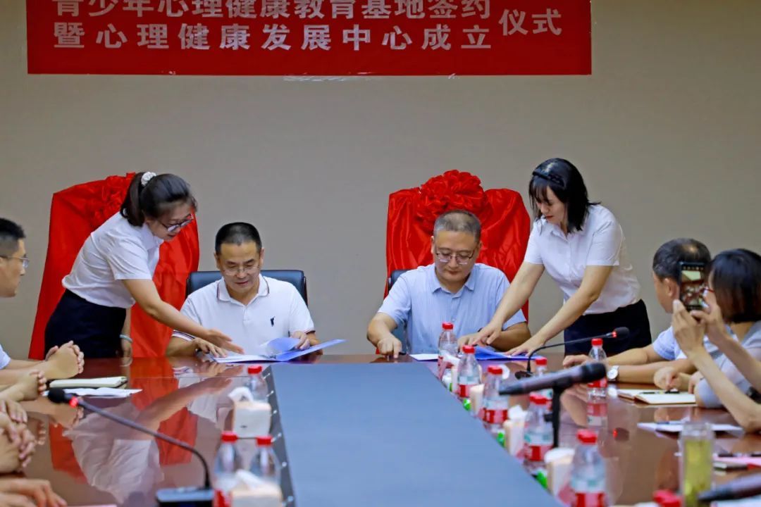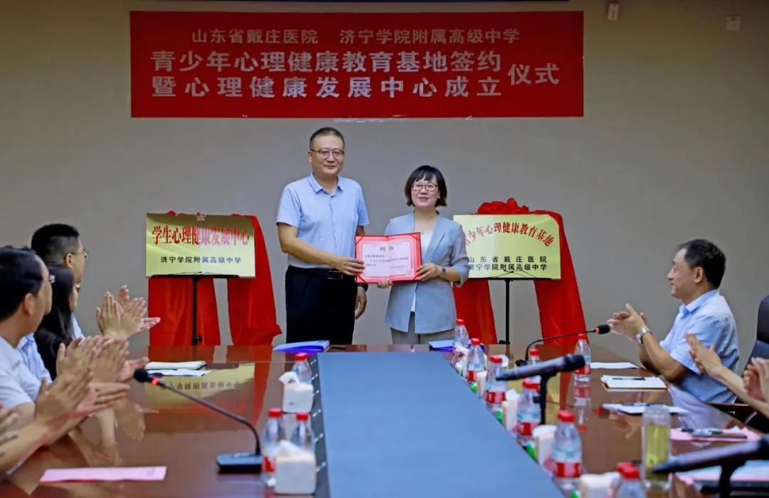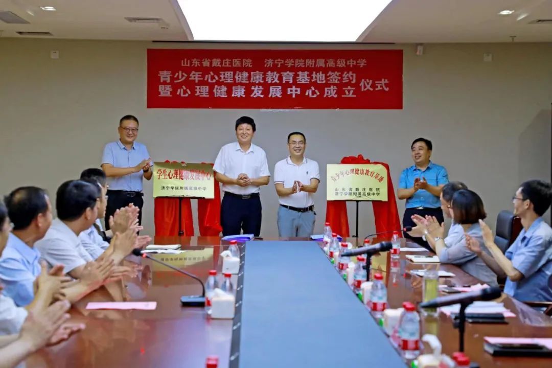 苏中华和张伟共同签署了共建“青少年心理健康教育基地”合作协议,王步德、苏中华、吴昭洪、张伟共同为共建“青少年心理健康教育基地”揭牌,张伟为山东省戴庄医院心理科副主任、济宁医学院研究生导师钱丽菊博士颁发特聘专家聘书。