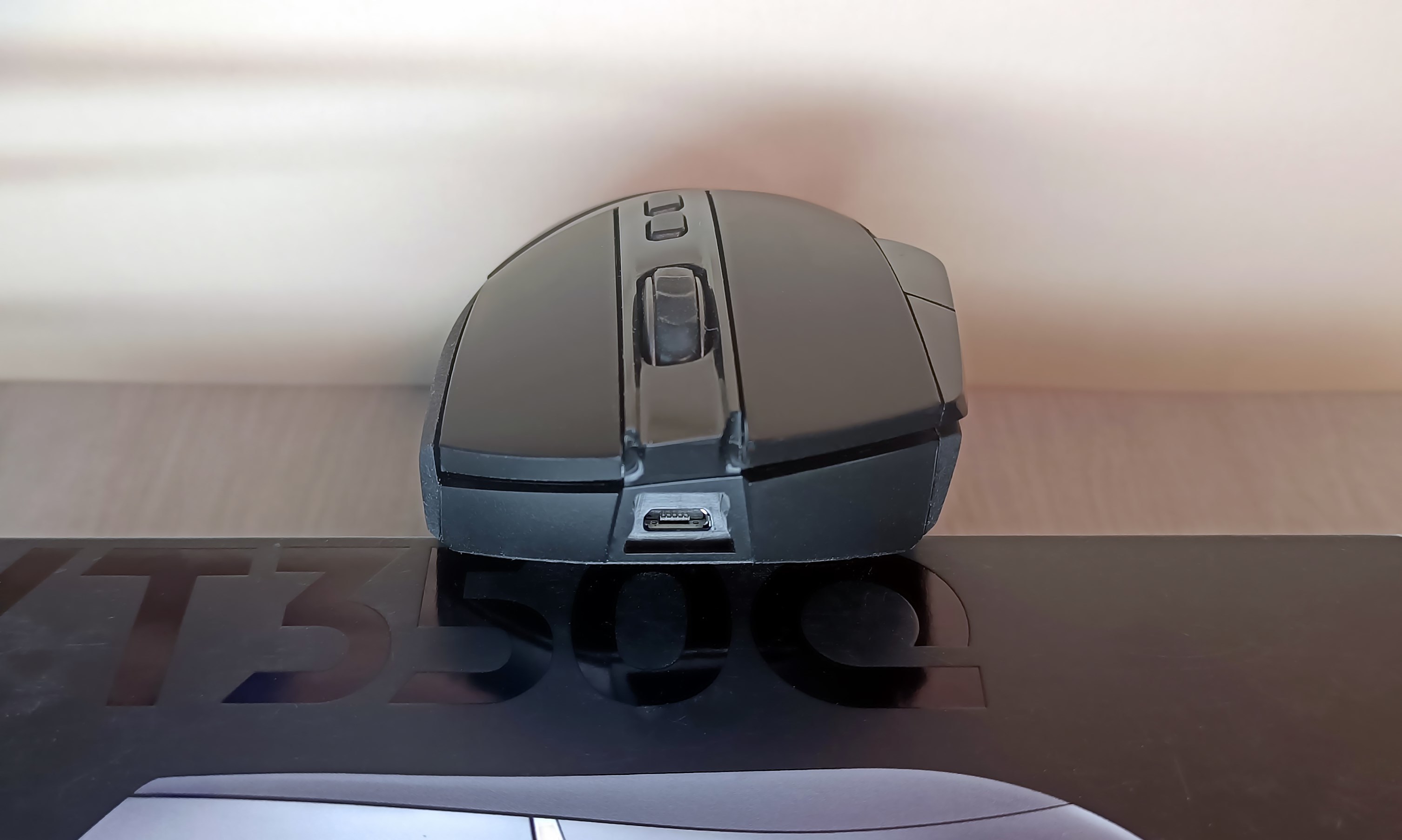 鼠标支持无线/有线两种连接模式,有线连接模式下可通过鼠标正前方的micro USB接口连接配送的USB数据线,再将另一头连接电脑USB口即可。主要用于鼠标电量不足,或无法使用USB接收器等极端情况。另外,此处的接口向内凹陷较深,非专用USB数据线可能无法适配。