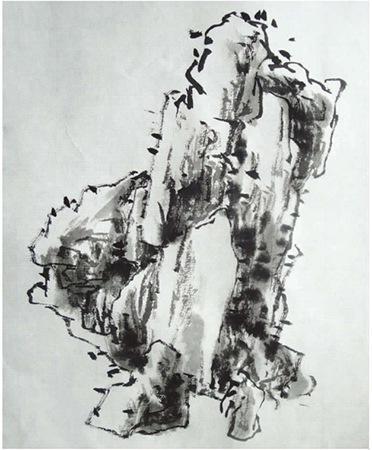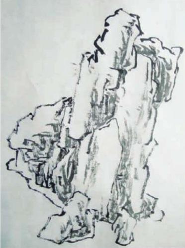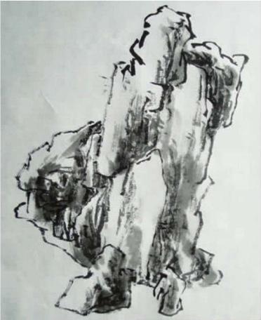 皴擦是在用线画好外轮廓的基础上,根据山石、树木的转折与质感,用不同的皴法去加强所画物体的体积关系、远近不同的层次,使画面逐步丰富起来。