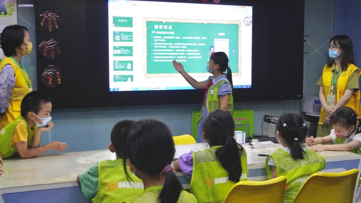 7月11日,在武汉市青山区八大家花园青少年空间,一位女孩正在领学居家安全注意事项。新华社记者 熊翔鹤 摄