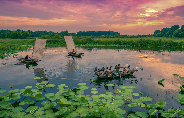 微山湖风光秀丽,生态资源丰富,有鸟类294种、鱼类78种、水生经济植物74种,山、岛、森林、湖面、渔船、芦苇荡、荷花池等多种资源类型,特别是盛夏时节,广袤湖面上十万亩荷花,接天莲叶,蔚为壮观,被誉为“中国荷都、北方水乡、铁道游击队的故乡”,素有“微山湖归来不赏荷”的美称。