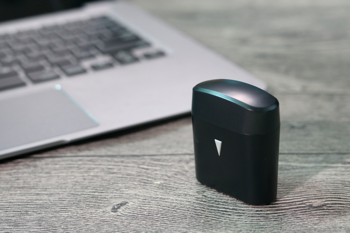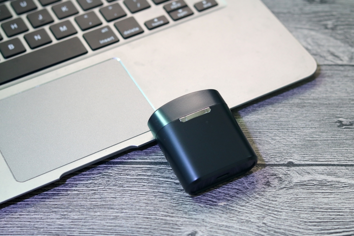 从外观来看,魔浪FiiTii HiFiAir的充电舱有点像打火机。整个充电舱设计简约,并搭配别致的线条美。
