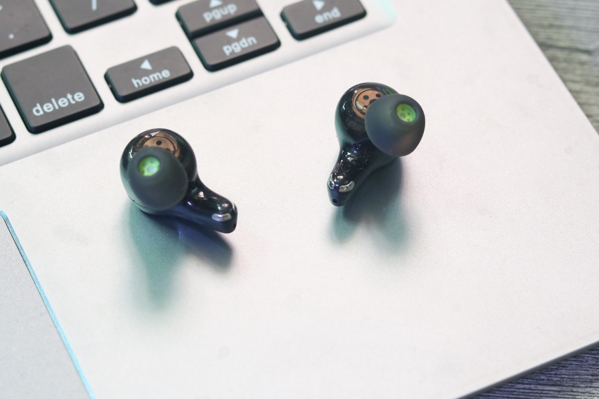 魔浪FiiTii HiFiAir的耳机外观是水滴形设计,再加上水滴尖的侧面位置有绿色长条指示灯,整体外观设计给人时尚科技感。
