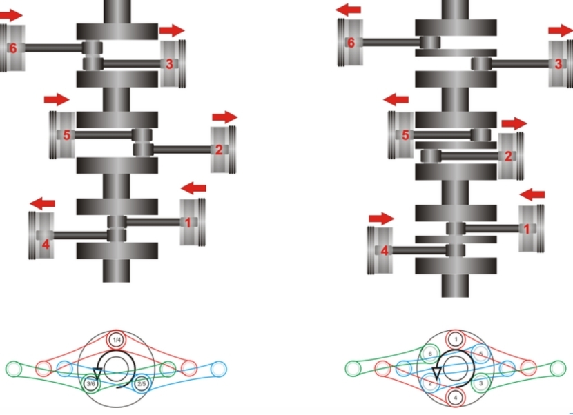 水平对置发动机最常见的配置是水平对置发动机,其中每对相对的气缸的活塞同时向内和向外移动。水平对置发动机是一种水平对置发动机;然而,水平对置发动机不一定是水平对置发动机。另一种配置实际上是V型发动机,气缸组之间具有180度角。每对气缸共用一个曲柄销,因此当一个活塞向内移动时,另一个活塞向外移动。