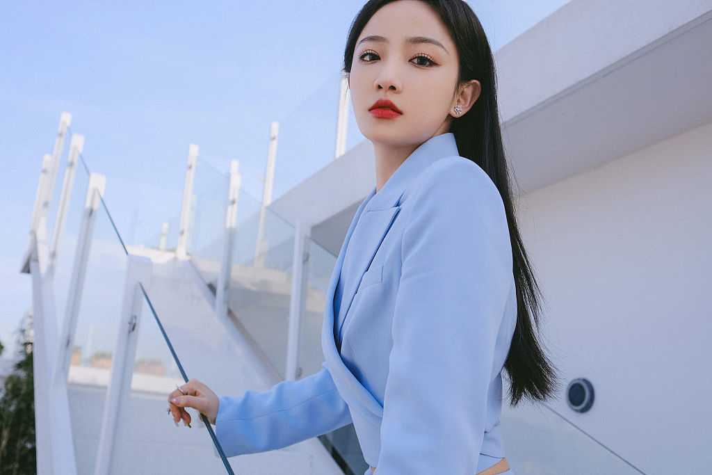 2022年7月16日,欢娱影视发布一组演员吴佳怡夏日淡蓝西装写真大片。