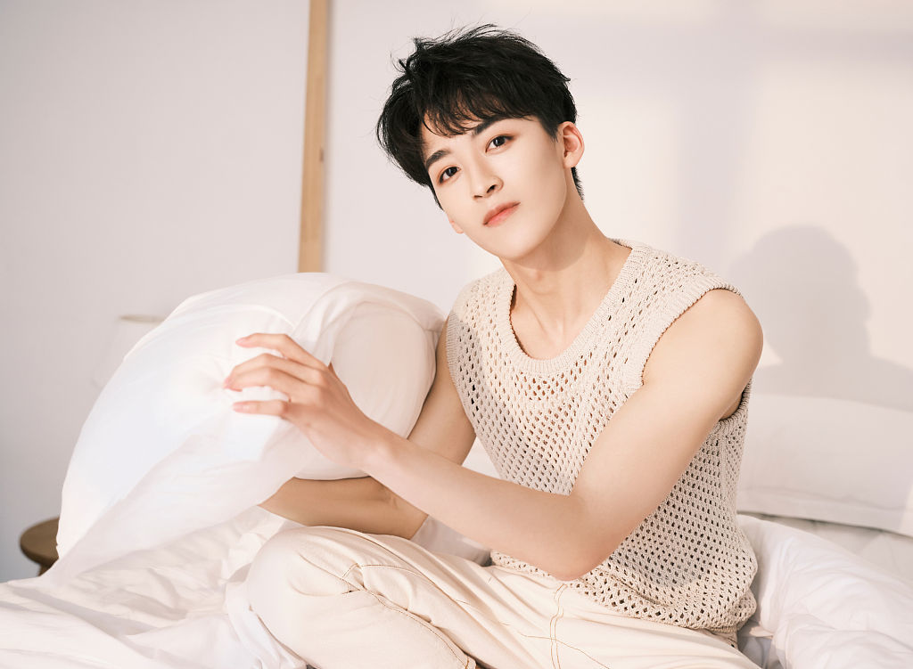 何洛洛夏日午后奶白系穿搭写真 秀手臂肌肉线条荷尔蒙满满