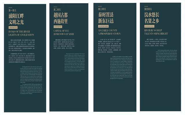 此次诸暨历史文化基本陈列以“诸山毓秀 浣水流芳”为主题,以时间为序,分四个单元:“浦阳江畔 文明之光”“越国古都 西施故里”“秦时置县 浙东巨邑”“浣水悠长 名贤之乡”。展览标题浓缩了诸暨的自然、历史和人文,反映了诸暨山川秀丽,自古民风淳朴,人文荟萃。这既是对诸暨6500多年历史的回望,也是对诸暨儿女再续宏篇的美好展望。