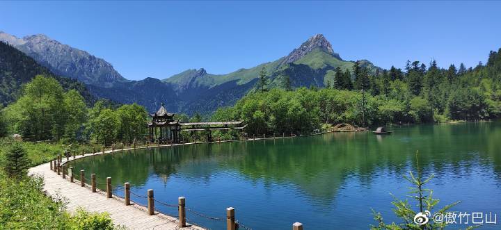 “舟行碧波上,人在画中游”,鹅嫚沟“泽荡措”,也被称作“鹅嫚天池”。鹅嫚沟,位于甘肃省陇南地区的宕昌县。名称的起源来自于当地官珠和鹅嫚的爱情故事。