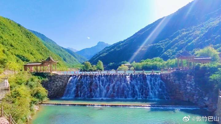 官鹅沟怪石嶙峋、叠瀑飞涧,鹅嫚沟山光水影一色,他们是一对不离不弃的恋人,静待四方游客来探寻他们的神秘与传奇。