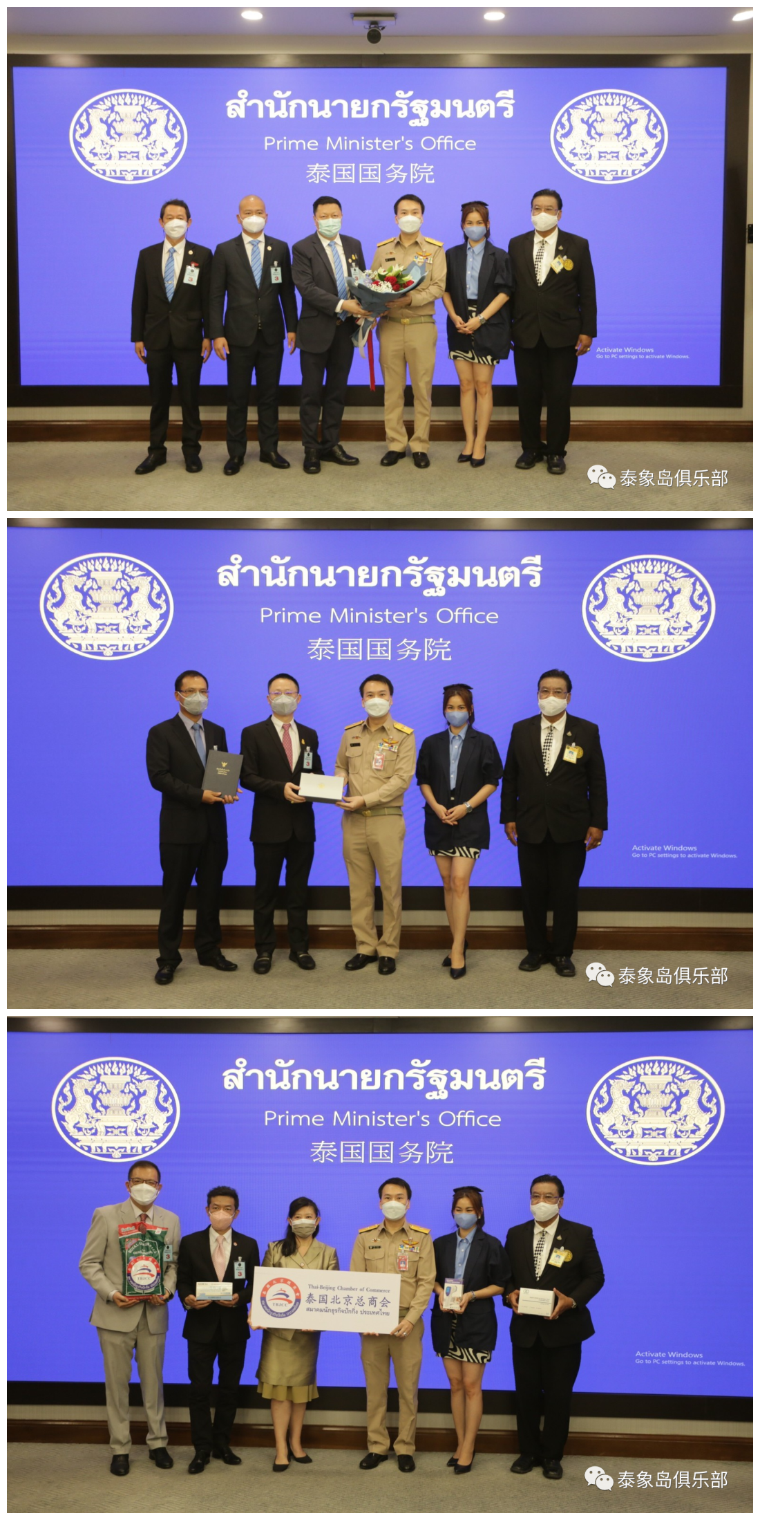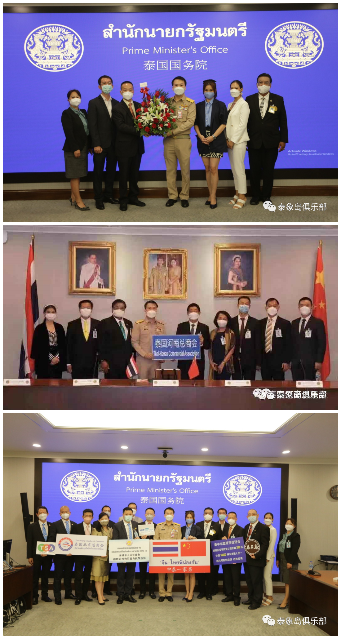 先后进入总理府国务院议事厅,获荣誉礼待、感谢、表彰的侨团领袖代表有:泰国中国和平统一促进总会会长王志民/王林怡珠贤伉俪、泰国华人青年商会代会长林玮、亚泰经济交流总商会会长李胜交、泰中工商业联合总会执行主席林伟、泰国广东(粤)商会常务副会长谢悦龙、泰国河南总商会会长刘超、泰国北京总商会常务副主席张静、泰国安防协会会长杨艳峰、泰中东盟经贸促进会常务副主席杜威逸、福建安溪总商会秘书长王晓敏、新世纪中-泰领导学院院长安卡拉博士等;华人华侨企业精英代表有:中聯華泰科技有限公司董事长林龙、中国移动国际有限公司总经理宁丽君、中国铁路公司泰国代表、泰国恩威集团董事长曾嘉仪、奇丽实业有限公司董事长陈细金、M.K.中泰物流集团董事长陈永亮、百世快递总经理钱卫、皇冠科技大众有限公司总经理比差、MGT科技有限公司董事长王少国、泰象岛俱乐部有限公司董事总裁刘振宁、AGRO REPUBLIC INTERNATIONAL 公司董事长夏先锋、BAR CITY代表王健、喃邦沙矿代表吴召敬、李靖宗、新亚洲电子科技有限公司董事长罗俊歆、泰国泰盛達米業有限公司董事长吴国龙/吴少娥贤伉俪、曼德林集团董事长符和南、蓝康医药集团(SRC) 黛安娜、华泰国际贸易有限公司董事长陈曙华、罗门有限公司陈钦杰、山东晨鸣纸业集团 代表张红雷等;泰中企业家精英代表有:郑友民、陈锦潮、陶然、廖晓文、张伟佳、吴大庆、邱树彬、祝梅娜、李森、蔡战海、吴少娥、周林江、吴锦珊、黄伟、路少奎、刘楚侨、高伟南、李猛、尹杰、傅洛奇、蔡贞坤、余蒙、冀晔慧、刘洋阳、杨春娜等。