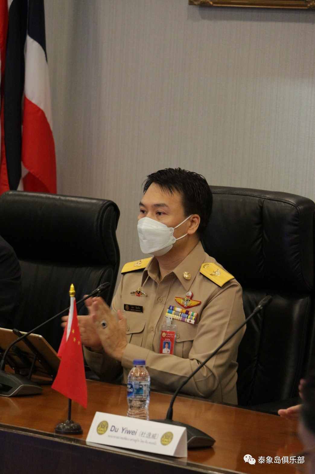肩任泰国国务院助理总理工作委员会主席、事务部长顾问、泰国国会军事委员会常务委员的罗亚蒙博士,在大家热烈的掌声中讲话,他说:我很高兴,能有机会接待泰中友好侨商会和企业家精英,你们在疫情期间慷慨捐赠防疫资金物品,我谨代表巴育总理感谢各位的关心与支持!这说明中国兄弟在困难时没有离开我们,一直站在泰国政府身侧,和我们一起携手同行。我们会把大家捐赠的钱物转交给政府属下各个部门,送到急需帮助的民众手里。从本月起泰国已经开放 ,有包括中国在内63个国家的民众,可以自由进入泰国,不必像过去那样隔离了,这是泰国为争取完全胜利而迈出的坚实一步。泰国政府同时希望你们能够增加投资,帮助泰国经济快速复苏。也请协助泰国政府多多宣传正能量,让中国人了解泰国鼓励投资的优惠政策,吸引中国优秀企业来泰国建厂兴业,助泰国经济搞活。我相信在场各位都是居泰华人的精英领袖,有着强大的实力和人脉关系,有能力帮助泰国提振经济,若各位对政府有何意见或建议,我愿成为桥梁,以巩固和促进泰中友好。人们常说,泰中一家亲、邦谊永相固,愿泰中友谊长存,再次诚挚感谢各位对泰国政府的支持和帮助!