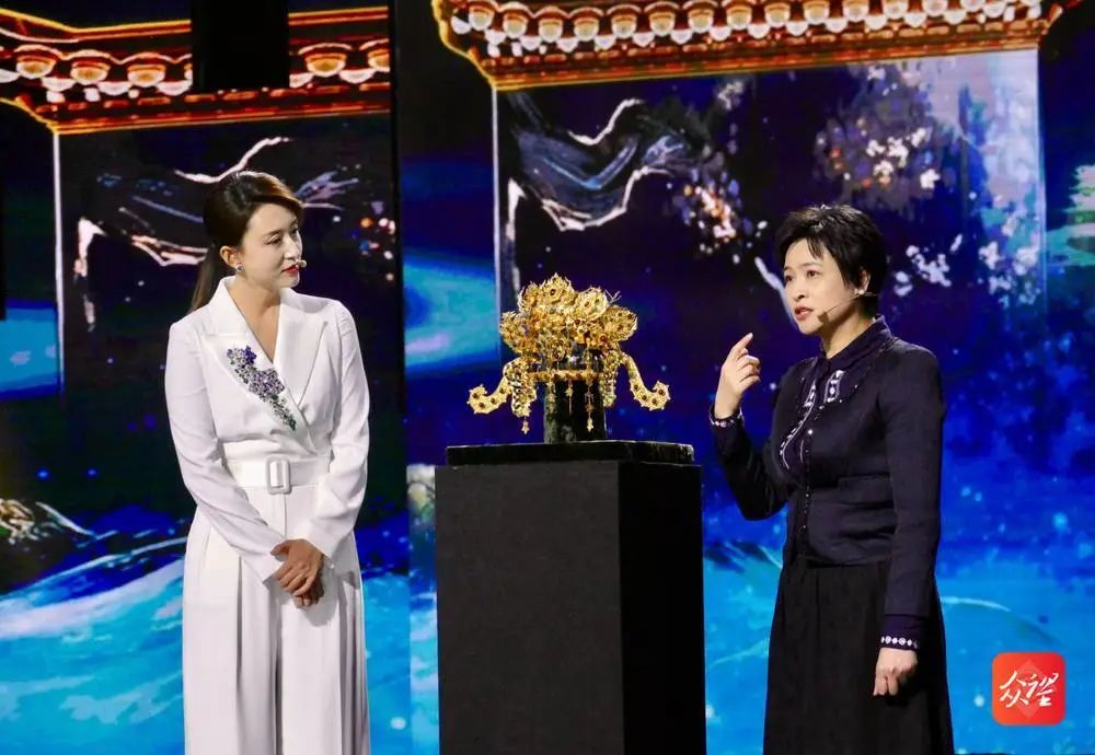 “这是杨氏土司为夫人打造的,不仅体现了播州杨氏的厚葬之风,也折射出地方土司政权的王权特征。”节目中,主持人张蕾通过提问互动方式,在周必素的讲解下,让观众深入了解金凤冠的打胎、累丝、錾刻、宝石镶嵌、锻造等细金工艺制作工艺。当得知这是杨氏土司专为夫人打造的饰品,不禁让在场观众和嘉宾感叹:吃了一把含金量十足的“狗粮”;原来杨氏土司也是一位“走在潮流前线的时尚达人”;文物要炫富,谁也挡不住!