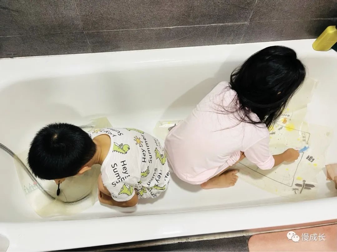 没想到俩娃热情得很,大概是觉得还有点玩水玩泡泡的感觉,而且开心自己可以做贡献,跟《卡尔的洗车店》似的,反正是大的进浴缸小的也跟着进了,俩人一起在那洗刷刷……