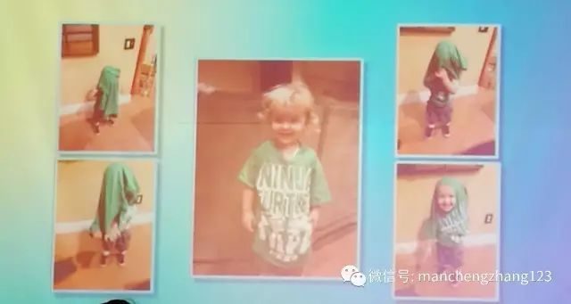 画面里是她3、4岁的小孙子,在尝试自己穿衣服,可是第一张头被套住、第二张还是、第三张又是……