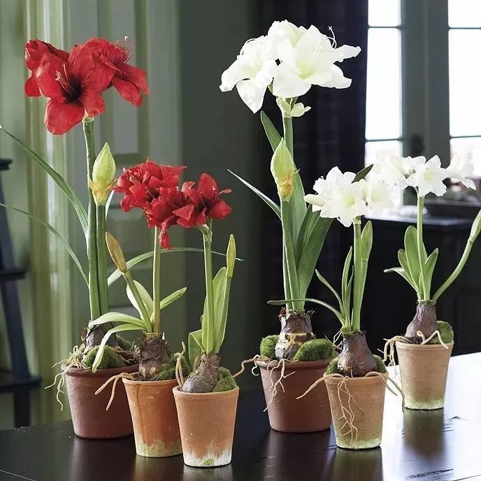 朱顶红是很流行的一种球茎植物(原产南美,比如巴西),每年的冬春时节就能孕育花朵。养护得当每年都能开花。栽种朱顶红时,球茎起码要有1/3以上露出土面,养护时多补充光照,避免暴晒即可。