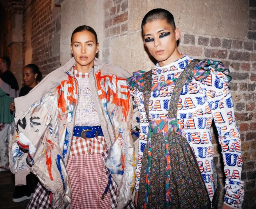 最终,凭借完美诠释了设计师的理想风格,他还被品牌官方选中,与国际超模 Irina 合影,成为品牌官网的封面男模。