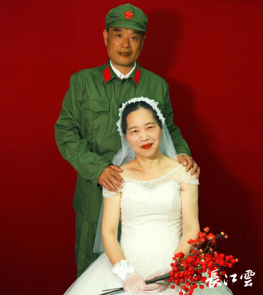 白婚纱与绿军装 圆老兵37年婚照夙愿