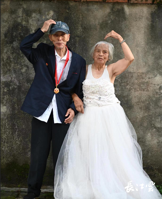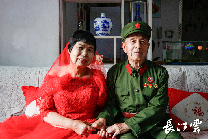 “真好看,和年轻一样美。”在湖北省黄冈市黄梅县,赵新国对着坐在轮椅上,袭着一身白色婚纱的妻子黎銮娇这样说道。伴随相机的快门按下,赵新国欲为妻子黎銮娇戴上粉花的画面就此被永远定格在照片里。70多岁的赵新国既是一名中共党员,也是一名退伍老兵。今年,是他与黎銮娇携手相伴的第48个年头。