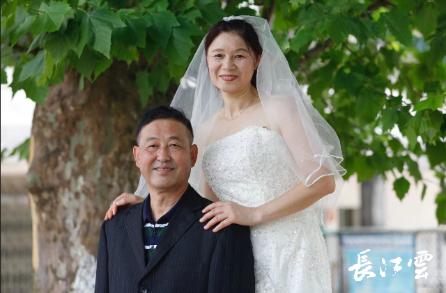“穿上婚纱圆了梦,真的好感动。”湖南韶山的老兵庞孟冬的爱妻龙伟玲说。这对携手37载的夫妻,面对镜头,再许白头偕老的庄严约定,白婚纱与绿军装定格家国大爱。