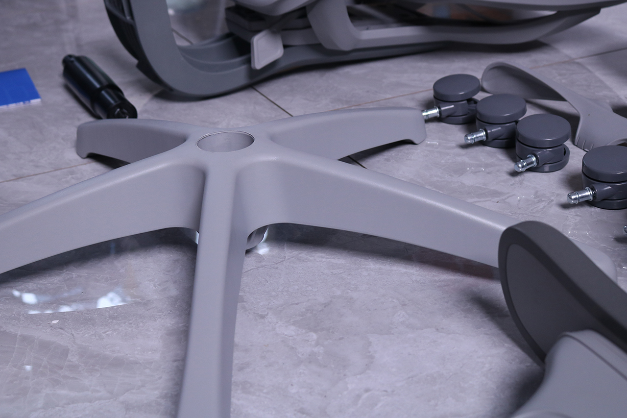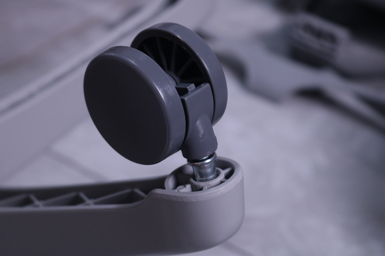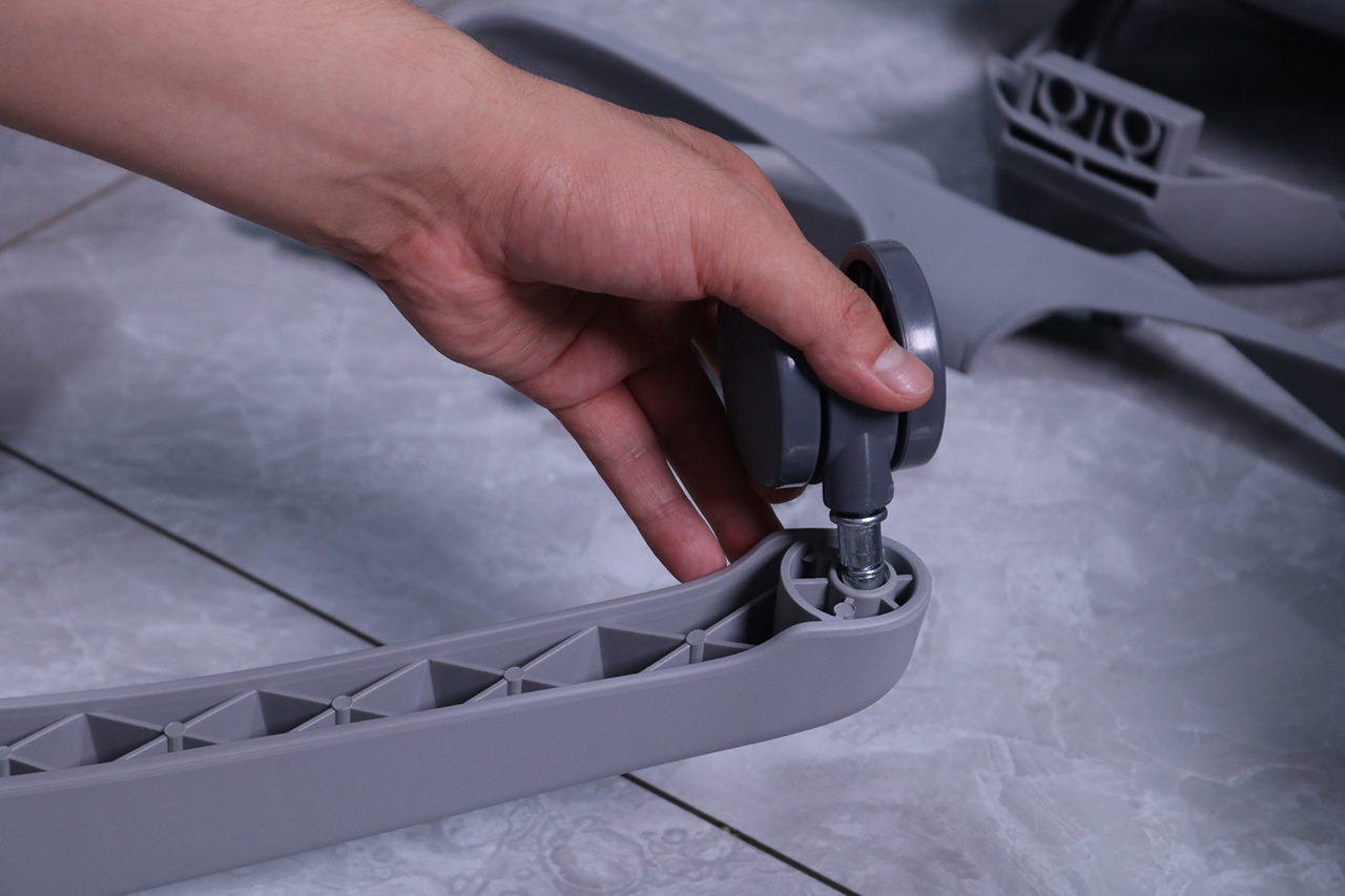 根据说明书上的操作以及安装视频,首先要安装5个万象滚轮,静音滚轮移动平稳顺滑不管是在家中或者办公场所使用,移动时没有噪音不会打扰其他人休息。