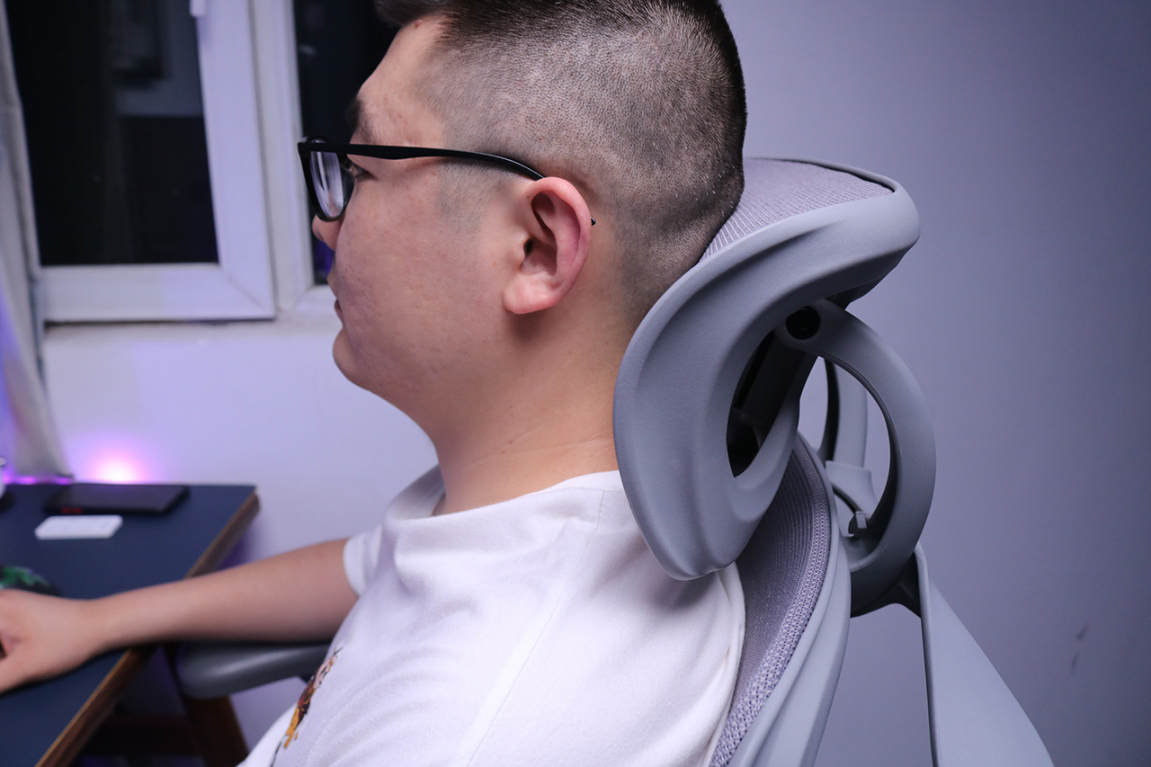 好多人体工学椅的头枕是固定不能调节的,这样很难保障头部及颈椎达到舒适的贴合,也就是我们经常说的梗着脖子不能放松。这款座椅头枕包含两档调节,支持俯仰36°调节,上下10档6cm的调节,可以面对不同身高以及使用座椅不同角度时贴合颈部。