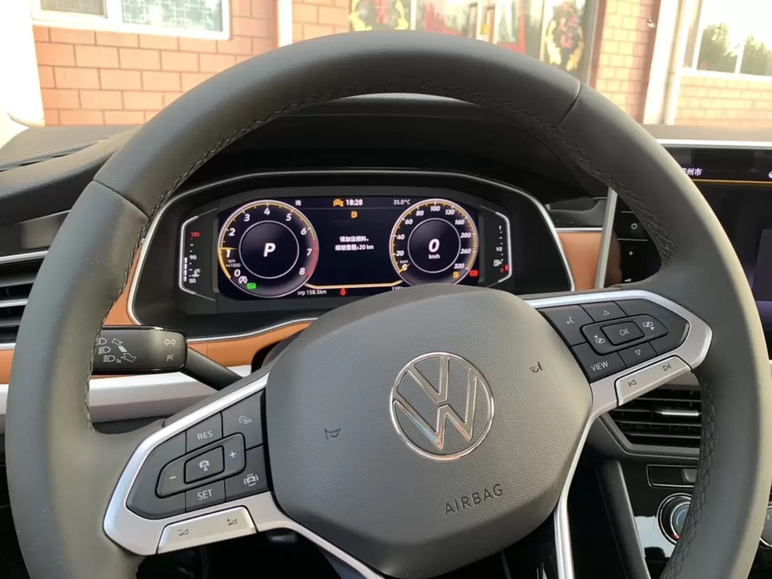 全新宝来换上了悬浮式中控屏幕,咨询了一下销售,新款屏幕的尺寸达到12英寸,明显比我的8英寸嵌入式屏幕看着爽。而且全新宝来全系都换上了液晶仪表,低配车型是8英寸的,中高配车型是10.25英寸的。我买的1.4T精英智联版是次顶配,却依然配备机械指针仪表,虽说各项数据看起来也很清晰明了,但视觉观感上就是不如液晶仪表上档次。新款的方向盘也换上大众迈腾同款,造型简约立体,搭配扁平的大众LOGO设计,质感相当出众。