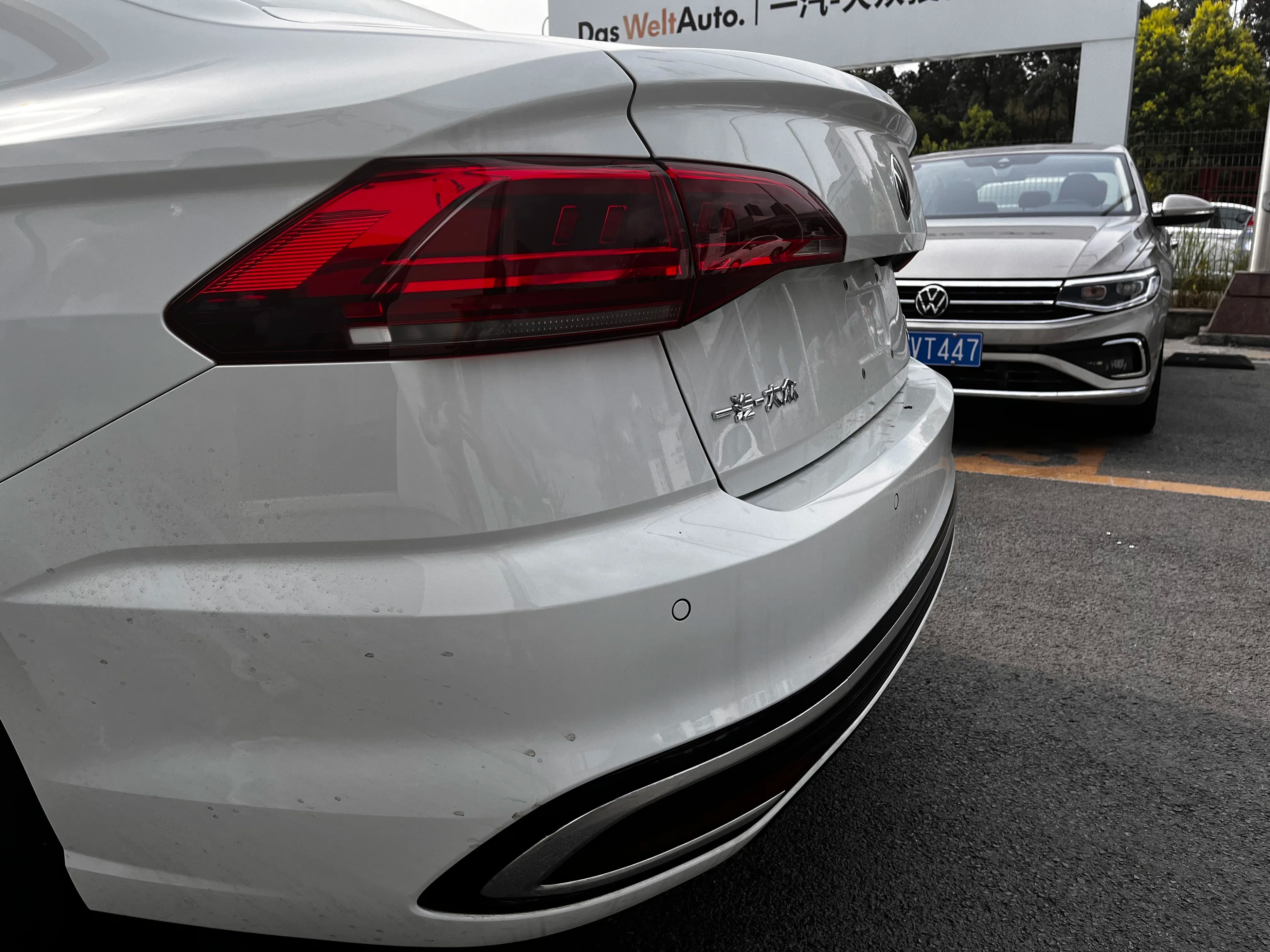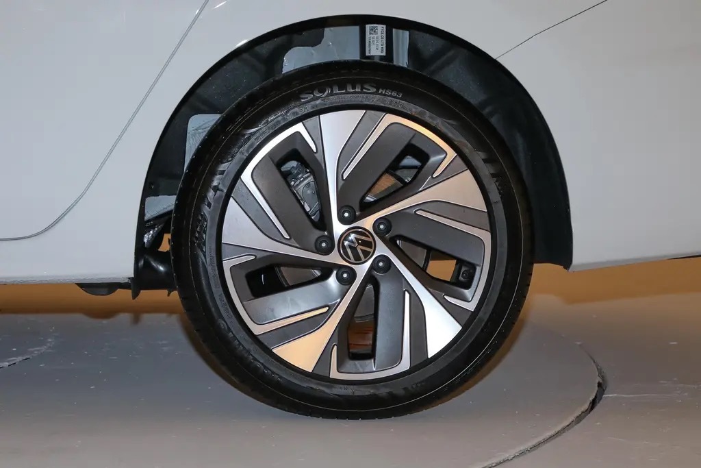 来到车身侧面,发现整体造型变化不大。不过轮毂造型变得更帅了,双拼色设计也很洋气,轮毂尺寸上也要比我的老款大了一圈,看了一下尺码,新款升级为17寸轮毂,尾部主要是后包围增加了一些镀铬饰条。看到这,我的内心并没有起太大波澜,新宝来外观确实变得更加精致,但这也算是常规升级吧。