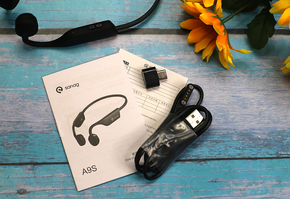 Sanag A9S骨传导耳机采用了全密封设计,从头上到下都没有开口,搭配的是一根带有触点的磁吸充电\数据线,内里带有170mAh容量的电池,可以持续使用超过8小时,待机时间超过10天,实用性超强。另外连接好线路后USB头插入电脑,可以被识别为移动储存,我们可以复制几百上千首歌曲在其中,无需连接手机或者电脑即可直接播放。