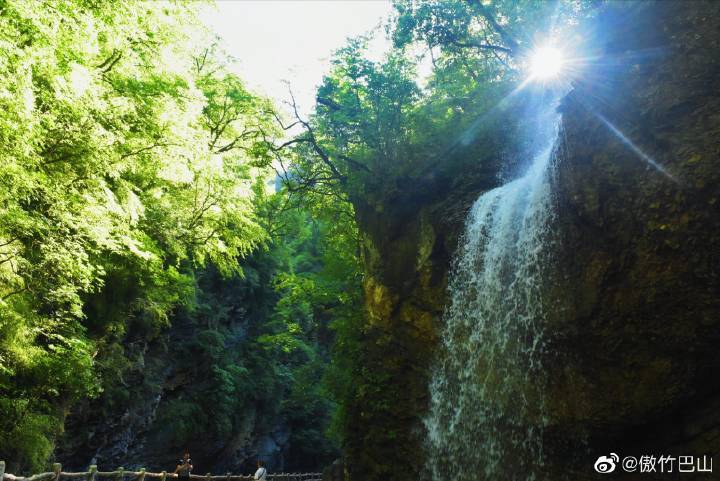 如此鬼斧神工的自然奇观,实属国内之罕见。一诗人欣然赋诗:揽胜偏怜日月长,鹅沟炎夏水风凉。奇峰叠翠通幽谷,雪浪喷珠泻石梁。万木欣荣青带玉,重崖森迥瀑飞先,绿荫满抱姿游兴,珠粉岩边野卉香。