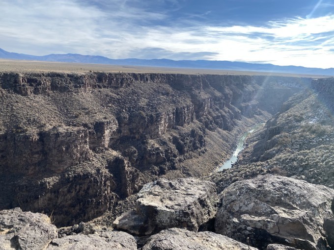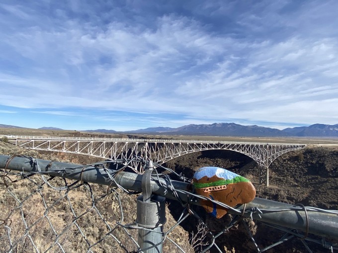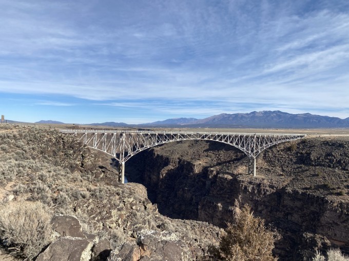 新的一天,目的地Bisti/De-Na-Zin Wilderness比斯帝荒野。但刚出Taos城不远还有一个著名景点,那就是Rio Grande Gorge Bridge里奥格兰德峡谷大桥。Rio Grande Gorge Bridge在当地被称为“峡谷大桥”或“高桥”,是横跨里奥格兰德峡谷的钢制拱桥。它高出里约格兰德河大约600英尺,是 美国 第十高的桥梁。站在大桥中间(恐高的人可能会有点害怕),俯瞰深深的峡谷和河流,不由的会感叹大自然的鬼斧神工。