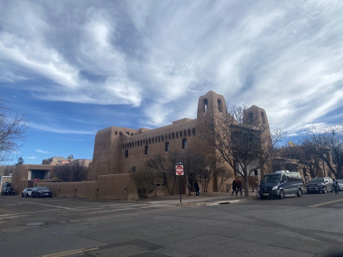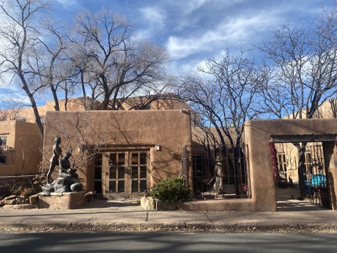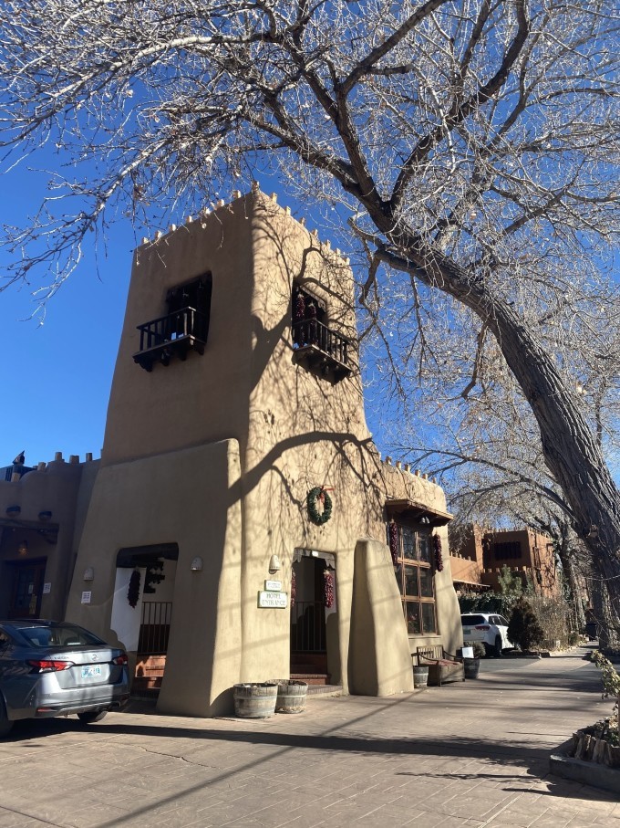 圣塔菲是 新墨西哥州 的首府,海拔2300米,是 美国 海拔最高的城市。这里有大量被称作 Adobe 的特色建筑。Adobe建筑是使用粘土作为主要建筑材料的所有建筑的通用名称。 从远古时代开始,人们就用泥土建造房屋。在 美国 和 墨西哥 西南部的土著人传统上就依靠土坯建筑,现在许多居住在这里的人依然使用着这种建筑方法。