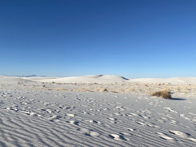 白沙 国家公园距离卡尔斯巴德不是很远,大概3小时。从洞穴公园出来后,直奔 白沙 。这里拥有纯白色的沙漠,忽入公园,让你分不清是雪还是沙。