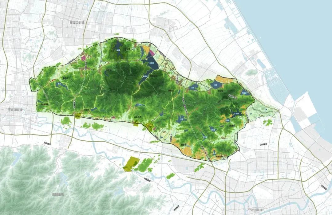 该片区山水优质、绵延起伏,最高峰443米,15公顷以上的湖泊水库22处。片区历史悠久、文化厚重,史前文化、海丝文化、慈孝文化、农耕文化、儒商文化、建筑文化、红色文化等在此汇聚,是宁波的文化地标。