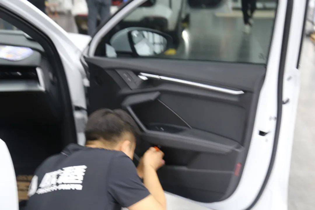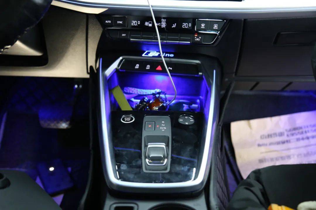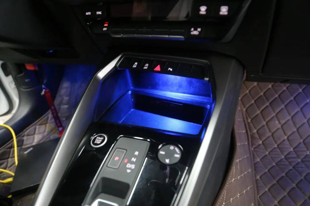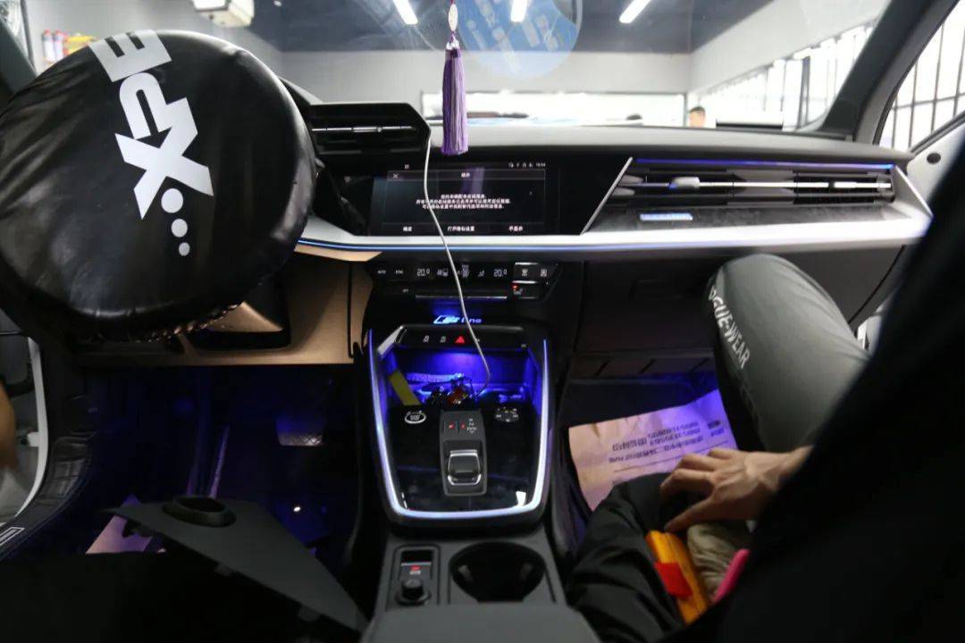 现在车内氛围灯也是必备项目了,提升车内氛围和浪漫气息,让夜间行车不单调。这台A3是不带氛围灯的,车主从我们的案例上看到A3可以升级氛围灯,立马就来一套一样的。本来定的一套氛围灯是没有中控和马鞍部分灯条的,因为这两个地方的需要另外定,车主说既然改一次,那就要改效果最好的,于是把这两个地方的氛围灯也一起装了。