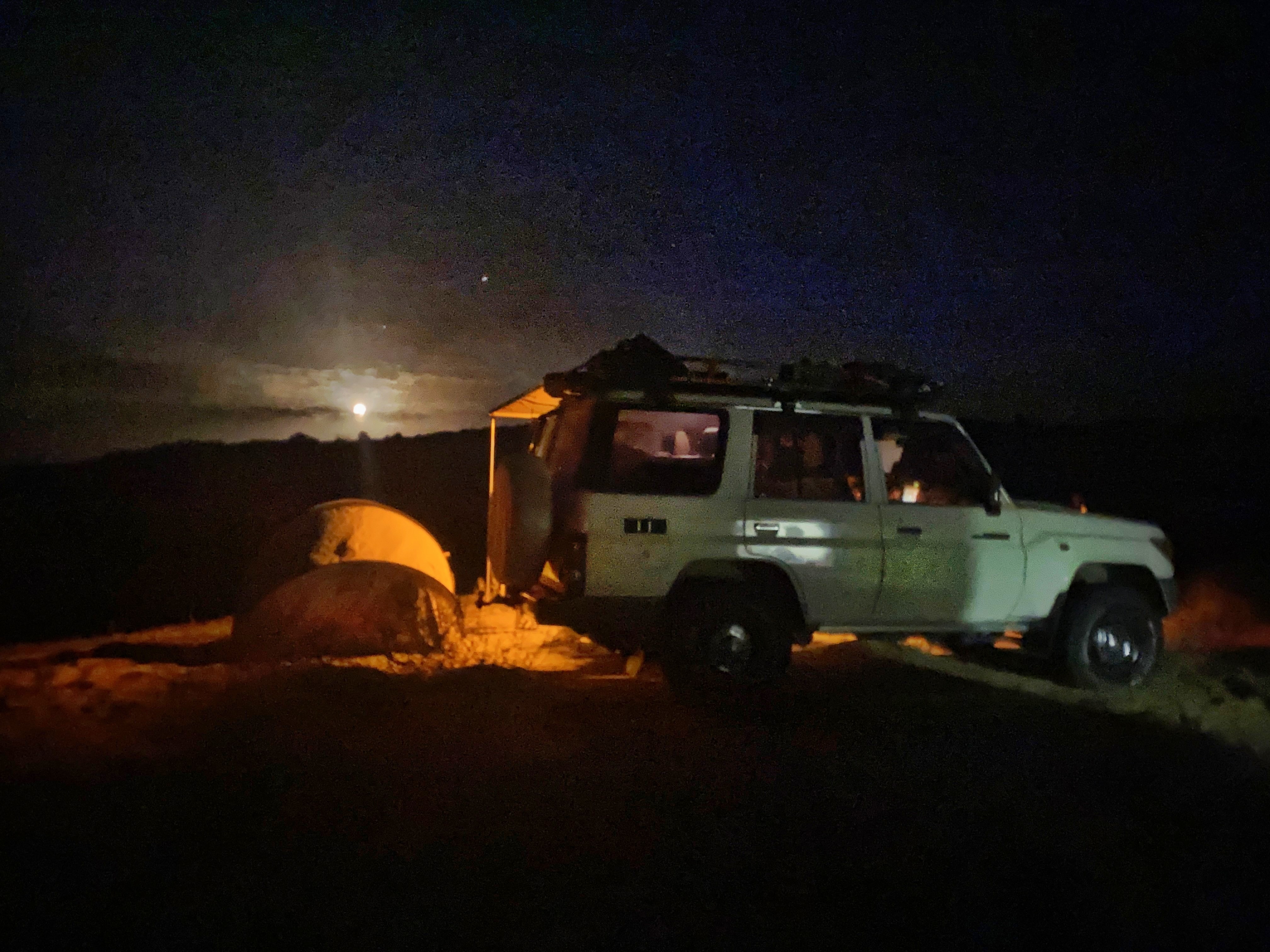 在外面的世界,即使身在陌生的城市也丝毫不慌,想去哪里,打开导航便能找到。而在这里,我们退化得好像只剩下了吃饭的能力,亦步亦趋跟着领航车的轨迹,毕竟刚刚陷车的流沙之地,任谁也不想体验第二次。