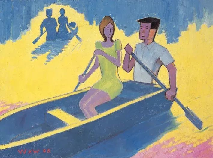王兴伟,《无题(中划船)》,布面油画,120x160cm,