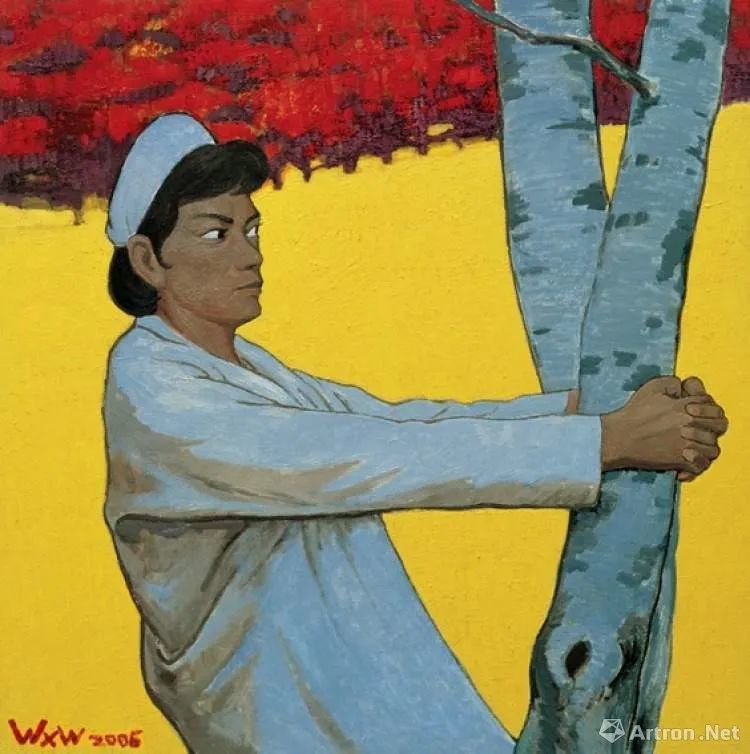 王兴伟,《无题(护士抱树)》,布面油画,